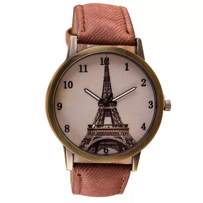 - Relojes de mujer de moda Torre Eiffel de imitación de cuero reloj de pulsera de cuarzo analógico para mujer reloj de horas de mujer colorido nuevo.